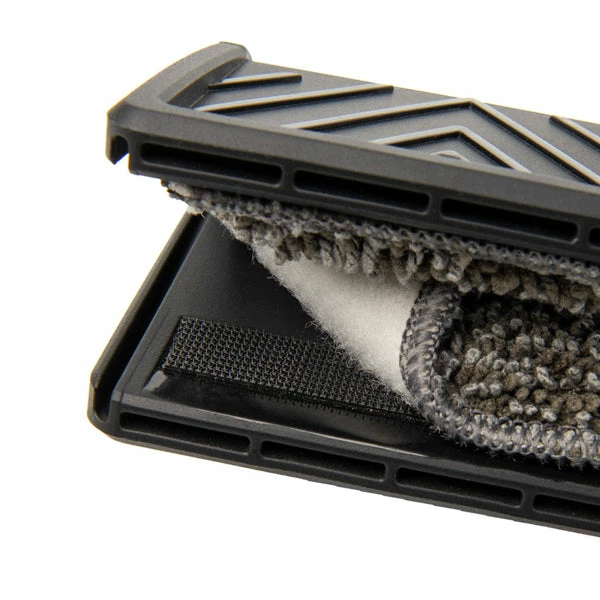 The microfibre pad is removable and can be washed repeatedly without disintegrating. Microfibre cloth is more absorbent, dries faster, and doesn’t become a breeding ground for bacteria, making it the better choice over traditional cotton towels.