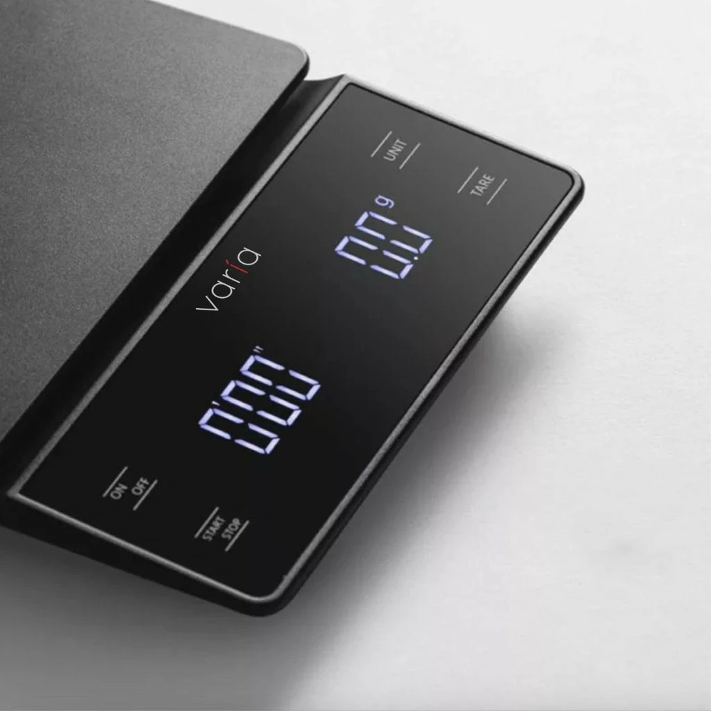 Precise and easy to use, the Varia Coffee Brewing Scale is designed with a slim compact profile. The tilted LED display gives you the ability to read your weights with ease even in low lighting or from an angle. With a maximum weight of 3kg and a timer included, this is perfect for the professional barista or any passionate coffee lover who enjoys the precision of weighing out their coffee.